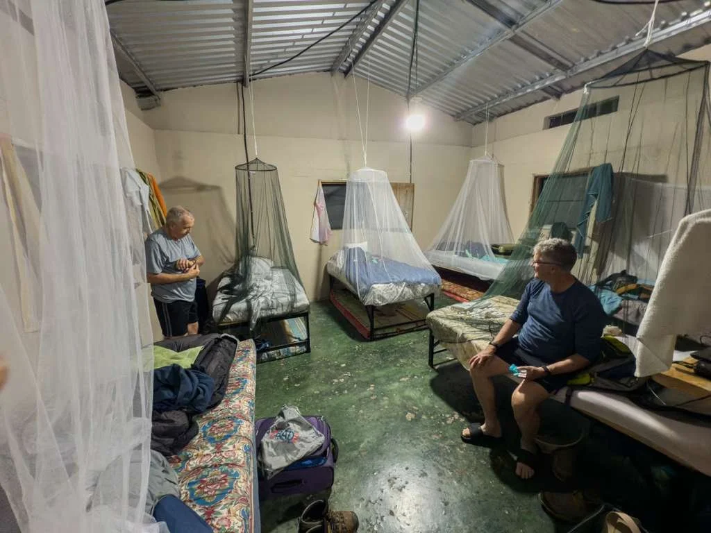 To keep our team safe from mosquitoes that spread diseases like dengue and screwworm, we spray our clothing and sleep with bed nets.